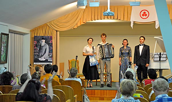 Необходимо обращаться к Высшему, читать, наполнять благими мыслями пространство и чётко представлять себе, какое будущее мы хотим иметь для человечества, верить в нашу будущую судьбу, которая нам предназначена. Ведь говорится в книге «Зов» (31.03.1923): «...Укрепляйте глаза, чтобы не ослепнуть, когда Приоткрою край завесы Грядущего». В России это будет особенно прекрасно, но в это надо твёрдо верить и всемерно утверждать. Это будущее уже создано в Высших Сферах, но нужно воплотить его на земном плане. Наша задача — помочь Иерархии Света в этом спасительном труде. Этой цели служат и созидающийся Музей Н.К.Рериха в Новосибирске, и журнал «На Восходе», и наши «круглые» и «квадратные» столы, и секции, и беседы, и творчество сотрудников Рериховского Общества; и мысли наши должны постоянно работать в этом направлении.