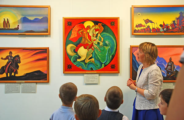 1 сентября, в День знаний, среди посетителей Музея Н.К. Рериха в Новосибирске были и те, кто идут «первый раз в первый класс». Будущие любознательные ученики пришли в музей со своими родителями. Им была проведена экскурсия по выставочным залам, которая носила характер оживлённого диалога. И когда экскурсовод, чтобы не утомлять столь юных гостей, объявила, что экскурсия закончена, оказалось, что они ещё хотят поговорить о картинах: «Вот об этой, об этой и ещё вот об этой». Ребят привлекли работы из «Героической серии» Н.К. Рериха.
