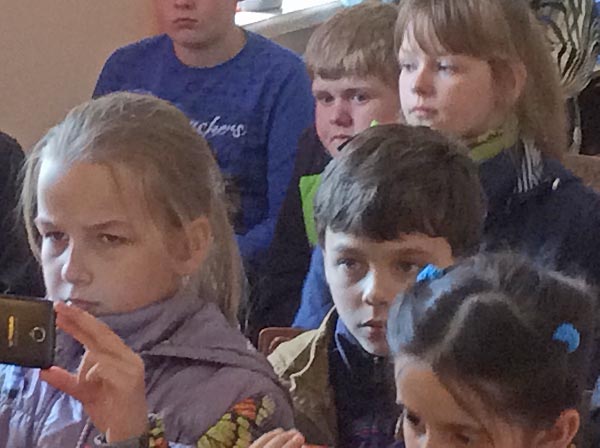 На открытие пришли учащиеся школы, московские сотрудники СибРО показали для них фильм и провели экскурсию по выставке.