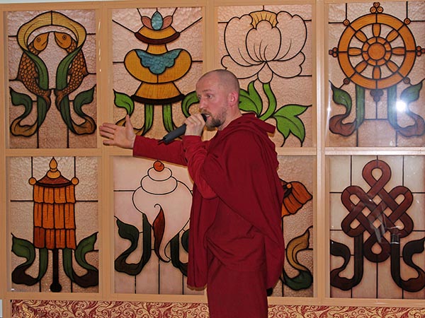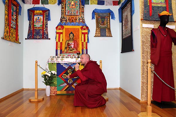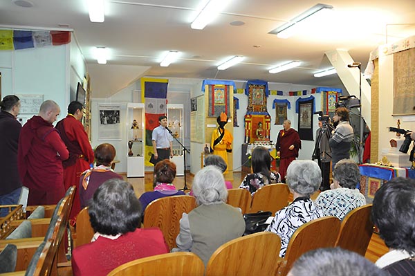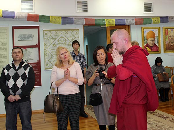 После приветственных речей лама Антон Щеглов провёл по выставке очень подробную экскурсию. В течение нескольких часов люди слушали его увлекательный рассказ. На следующий день, в субботу, экскурсия была повторена для тех, кто не смог прийти в пятницу.