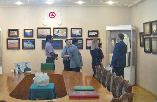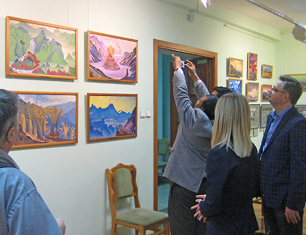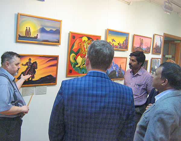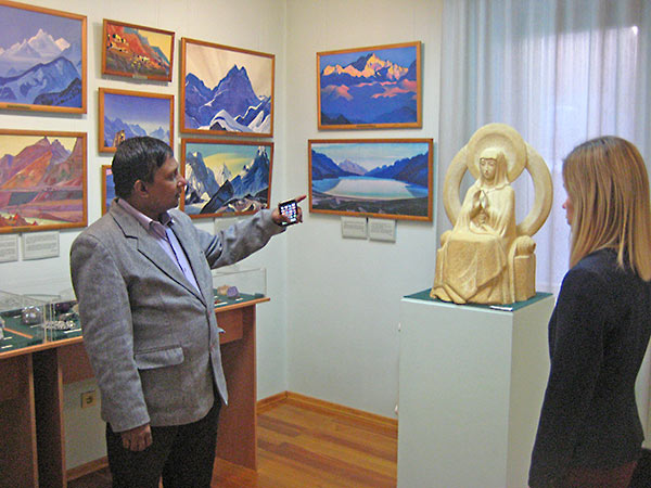 Конечно, детали аюрведической медицины ясны только специалистам, а в Музее Н.К. Рериха разговор шёл об особой миссии России и Индии в духовном возрождении человечества. Доктор Рам Манохар и его ассистент с интересом расспрашивали о музеях Рериха в Индии, останавливались возле работ Николая Рериха, посвящённых Индии (таких как «Гуру Чарака», «Нагарджуна»), запечатлевали на память скульптуры украинского скульптора Алексея Леонова. Лица на портретах работы Святослава Рериха узнавали сразу – и шутили, что уже научились читать русские подписи. О.В. Сорокин, не впервые посещающий Музей Рериха, дополнял экскурсовода, проводил параллели между творчеством Николая Константиновича и Аюрведой.