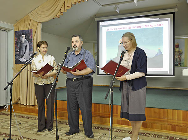 Сегодня, в первую субботу весны, а в этом году это 4 марта 2017 г., мы собрались в Музее Н.К. Рериха в Новосибирске, чтобы в третий раз отметить рождённый в СибРО новый праздник — День строителей Нового Мира. Это праздник рериховцев, объединяющий (подчёркиваем ещё раз — не отменяющий, но именно объединяющий) смысловое значение и Дня Защитника Отечества, и Международного женского дня.