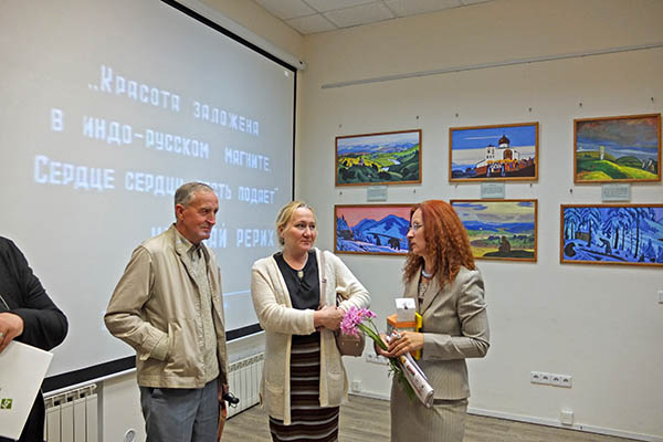«Открытие прошло в очень теплой, душевной атмосфере, - пишут нам минские сотрудники. - Тон мероприятию задал заместитель руководителя Представительства Россотрудничества в Республике Беларусь Л.Макуров. Он показал хорошую осведомленность о жизни и творчестве Н.К. Рериха и так душевно отозвался о его культурном наследии и жизненной миссии, что весь вечер прошел на хорошем духовном подъёме. Думаю, что своим выступлением Л.Макуров сломал стереотипы о бездушных чиновниках, не интересующихся культурным наследием. Также им было высказано много добрых, благодарственных слов в адрес Музея Н.К. Рериха г. Новосибирска и передана благодарность исполнительному директору. Людей было много, и в помещении было тесновато, но все были настроены дружелюбно и проявляли искреннюю заинтересованность к проекту. Мероприятие длилось более двух часов, люди расходились радостными и воодушевленными».