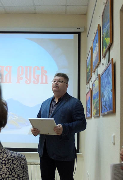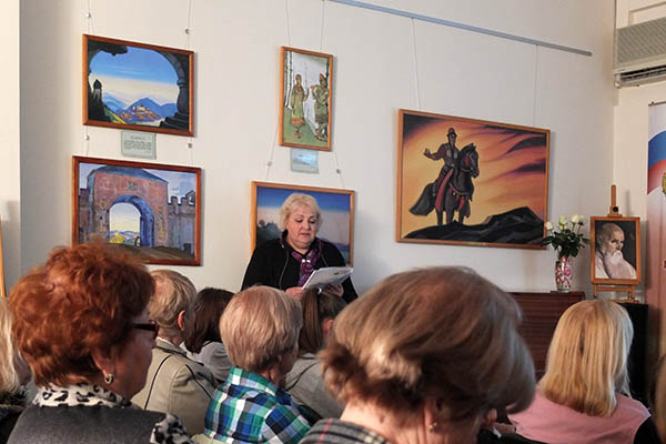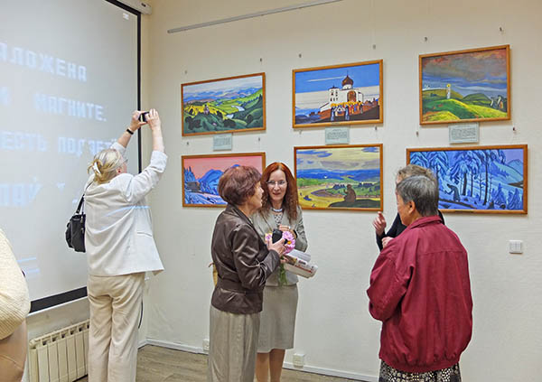 Перед гостями выставки выступили зам.руководителя Представительства Россотрудничества в РБ Леонид Макуров, председатель РОО" Белорусский фонд Рерихов" Ирина Возмитель и художник-куратор выставки в Российском центре науки и культуры Алла Кейге.