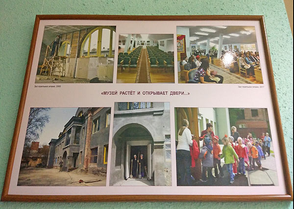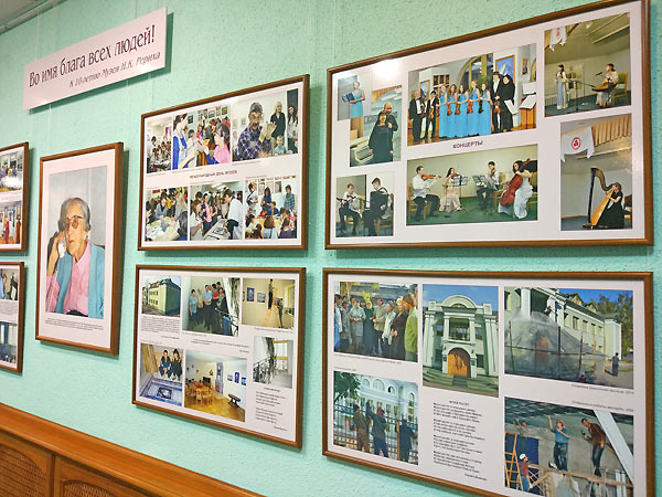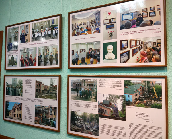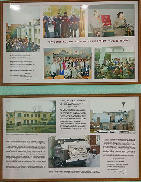 В фойе первого этажа Музея разместилась фотовыставка "Во имя блага всех людей" о строительстве и жизни Музея, дополненная цитатами и стихами. Помимо фотографий, на отдельных стендах оформлены графика алтайского художника Анатолия Веселёва и работы Галины Петровны Гориной, посвящённые Музею. Эта выставка будет работать до конца года.