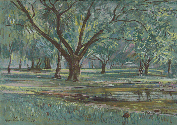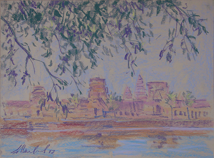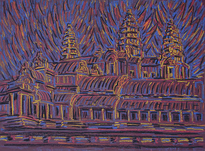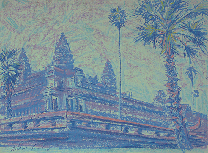 Самым запоминающимся стало посещение храмового комплекса Ангкор Ват — крупнейшего культового сооружения в мире. На выставке будут представлены 41 пастель и артефакты, собранные во время этого путешествия.