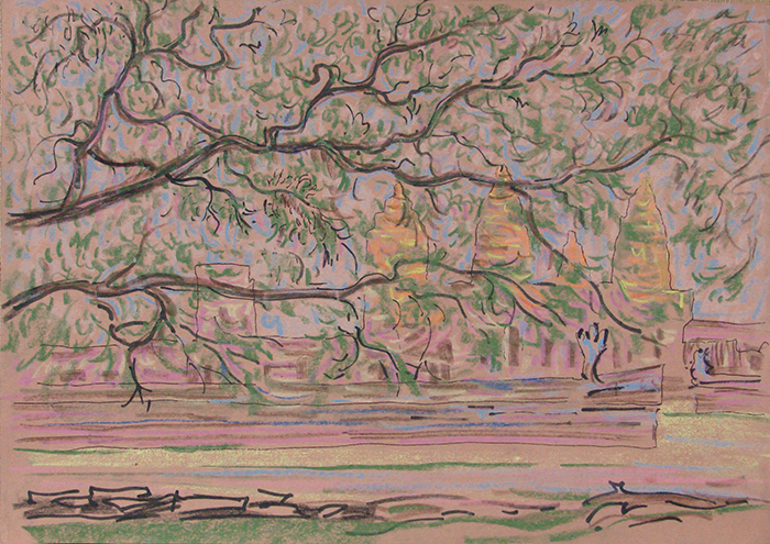 Я хотел показать с помощью линий, штрихов, фактуры трепещущие, звенящие, словно мерцающие звуки, которыми окружены храмы Камбоджи.
