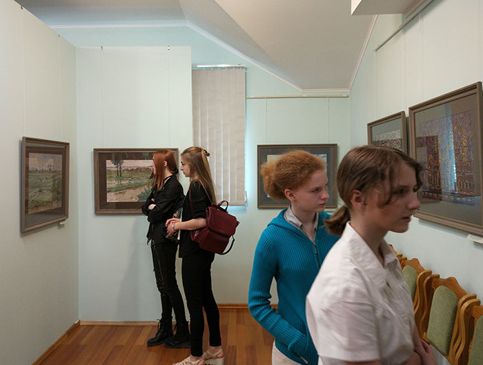 Название выставки - «В объятиях тысячелетия», она представляет нам кусочек Востока. Автор работ, Арсений Петрович Милованов, член союза художников России, выставляется в Музее Рериха уже третий раз.