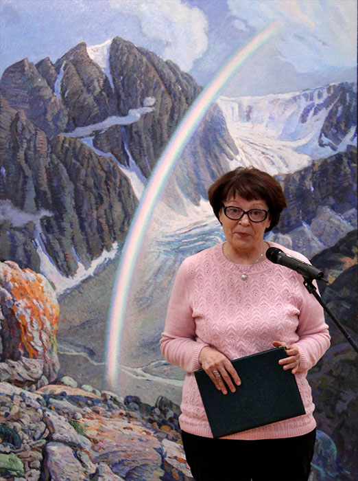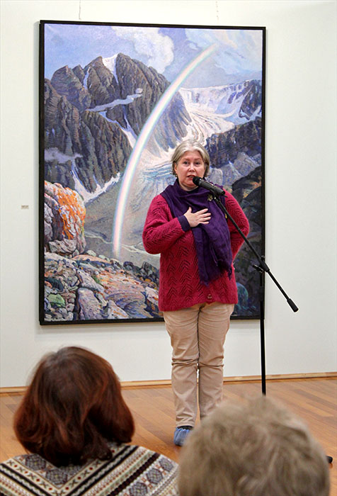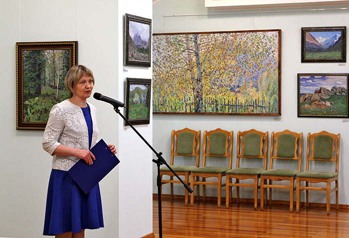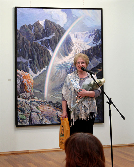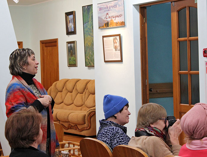 Мероприятие вела Л.А. Толстихина, и начала она с добрых слов об Алтае и художнике: «Алтай стал источником вдохновения для многих художников от Г.И. Чорос-Гуркина и Н.К. Рериха до наших современников. Находясь на Алтае, невозможно не восхищаться его красотой. А если ты художник, то, наверно, невозможно не запечатлеть эту красоту на картинах. Алтай многолик, и в творчестве разных художников отражаются разные грани его красоты. Сегодня мы рады познакомить вас с картинами замечательного художника Евгения Бучнева и представить его самого. В наш потребительский век нас часто пытаются обмануть, выдавая за искусство нечто на самом деле далёкое от него. Но сердце не обманешь, оно безошибочно отличает высокое от низкого, прекрасное от безобразного. В каждом своём произведении Евгений Васильевич утверждает Жизнь, радость, сердечное дружелюбное отношение к миру…»