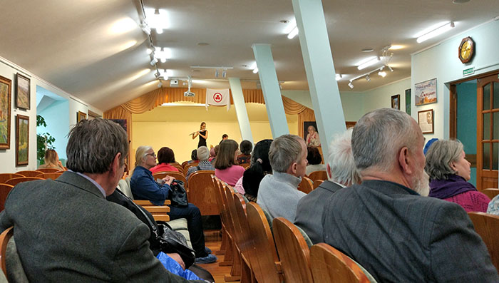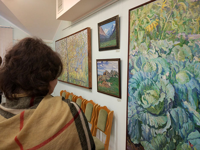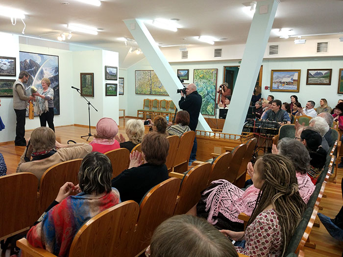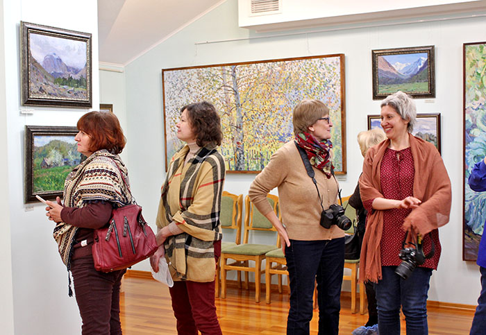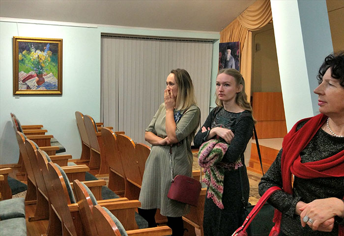 До начала мероприятия люди успели походить по залу, посмотреть выставку, и по восхищённым взглядам и одобрительным улыбкам, с которыми посетители обменивались мнениями, обсуждая сюжеты картин, было видно, что выставка всем понравилась.