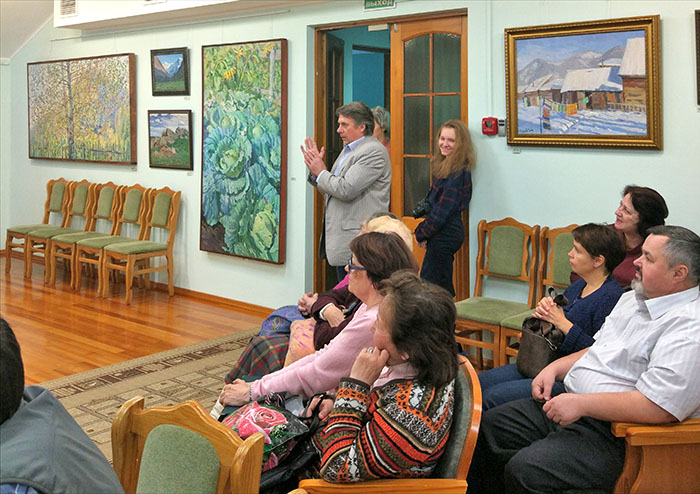 Но ещё долго художника не отпускали его поклонники, обсуждали картины, задавали вопросы, фотографировались, и было видно, что людям хорошо, им совсем не хочется отсюда уходить… Зал опустел только перед закрытием Музея.