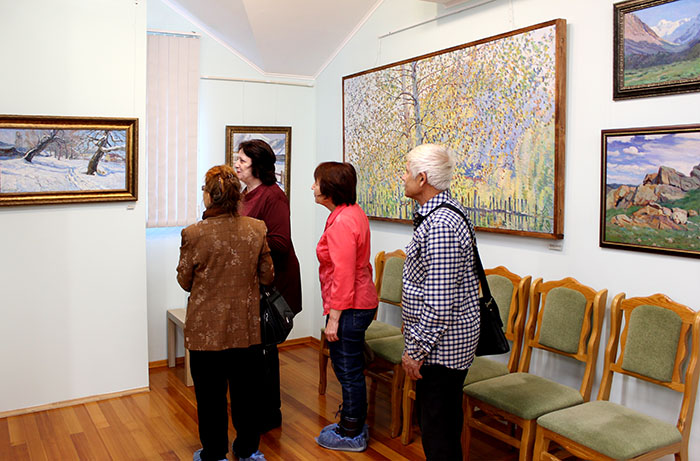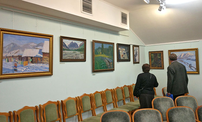 В работах художника был представлен Алтай во всём его многообразии: буйно цветущая природа, задумчивые горы, много повидавшие на своём веку, суровые ледники и, конечно же, величественная, загадочная Белуха, хранительница многих тайн. Без Белухи не обходится ни одна выставка алтайских художников. Это традиция.