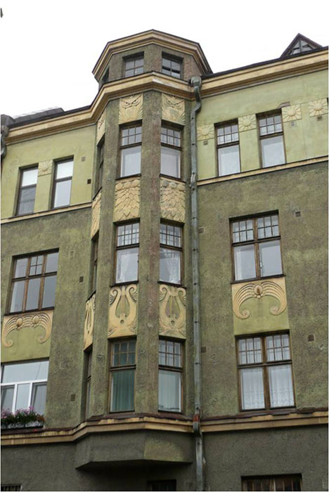 Николай Рерих вместе с супругой Еленой и сыновьями Юрием и Святославом проживали в Выборге с октября 1918 года по май 1919 года в доходном доме (в обиходе «с совами», «с арфами» или «с лирами») по ул.Тургенева д. 8 кв. 2 (Тургенева - это бывшая Ютеининкату в составе Финляндии до 1939 г., или Ладоуская ул., в составе России до 1917 г.). Дом построен в стиле модерн в 1909 году известным финским архитектором Отто Вартиоваара.
