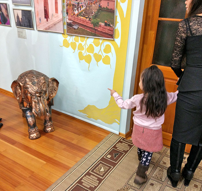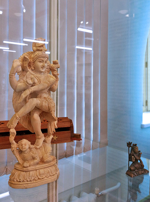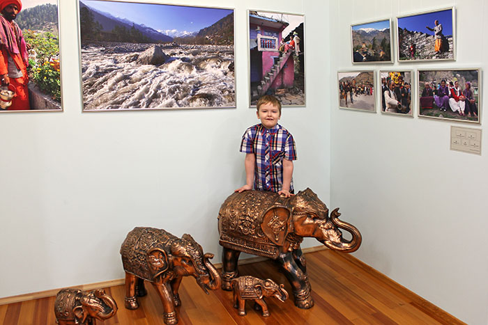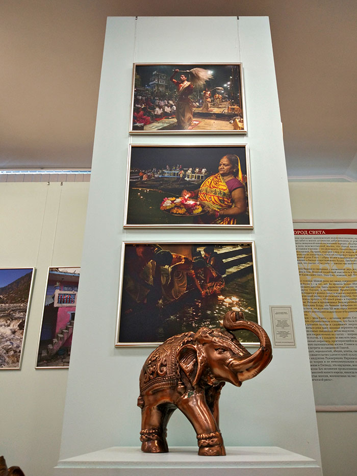 Очень оживляют экспозицию восемь скульптур слонов из металла, любезно предоставленные для выставки председателем индийского культурного сообщества в г. Новосибирске Гауравом Мехра.