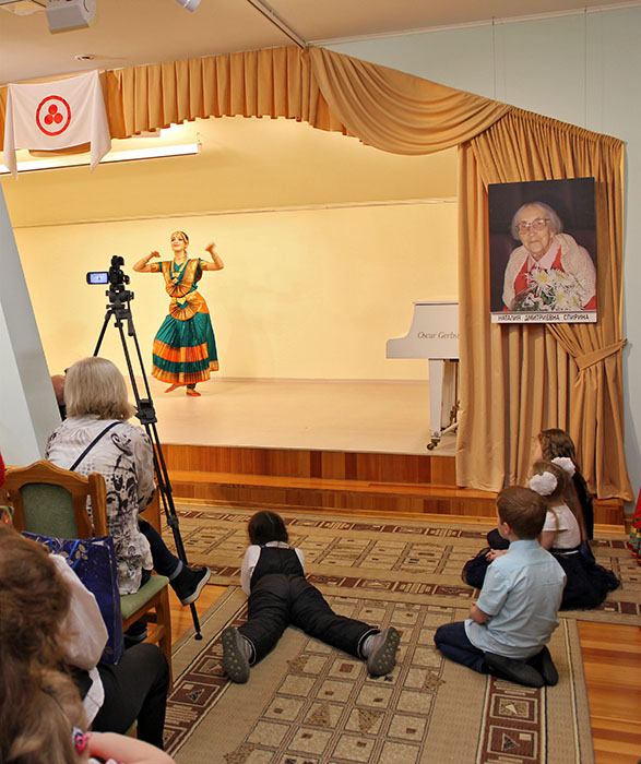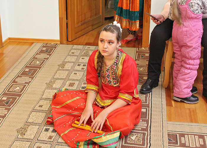 Продолжилось наше праздничное мероприятие прекрасным, ярким выступлением студии индийского классического танца «Васанта» центра внешкольной работы «Галактика» (руководитель Елена Суворова).