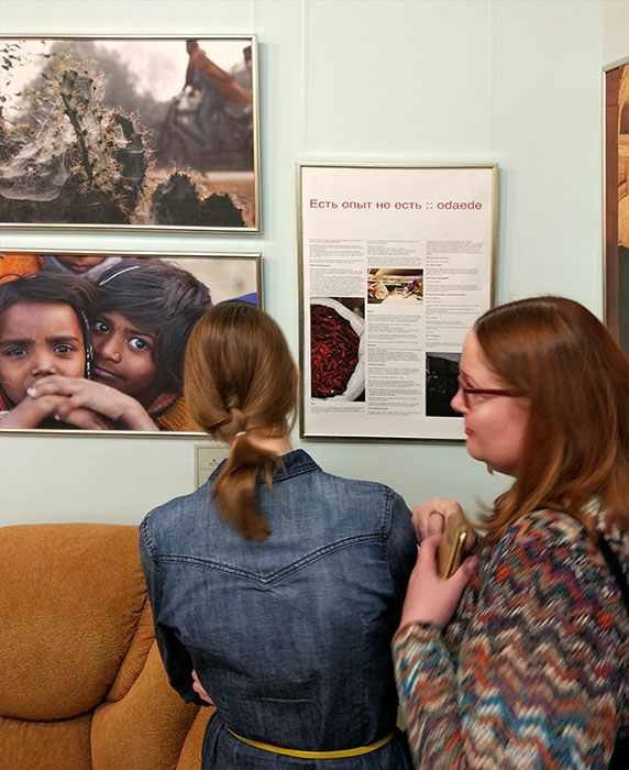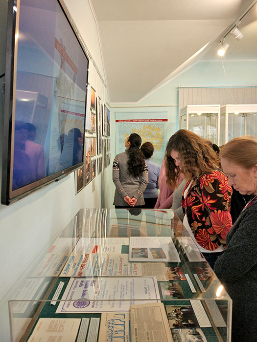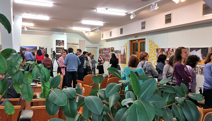В ходе этой встречи нам была предложена выставка репродукций картин современных индийских художников. Летом мы получили эту выставку из Культурного центра Джавахарлала Неру, и 30 июня, в День города, состоялось её открытие под названием “Мотивы Индии”.