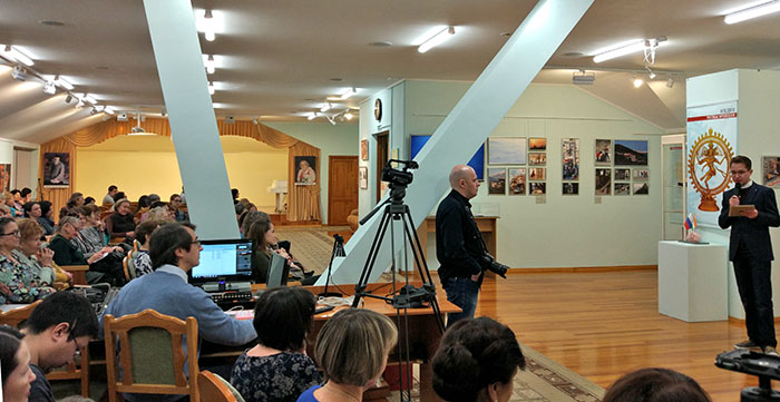 Прозвучало приветствие руководителя Издательского отдела СибРО С.А. Деменко: «В старинных книгах об Индии можно найти удивительные для современности сведения, например, что её географическое положение было не таким, как в наше время. Так, во времена походов Александра Македонского северная граница Индии простиралась далеко на Север! Эта граница не была определена. Давайте сегодня определим её до… Новосибирска! Предлагаем всем собравшимся не столько воображением перенестись в Индию, сколько саму Благословенную Индию перенести сюда, в столицу России Азиатской…»