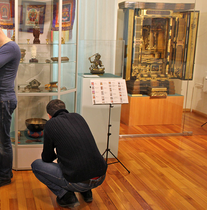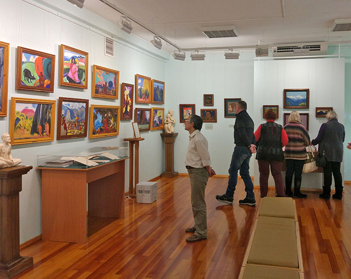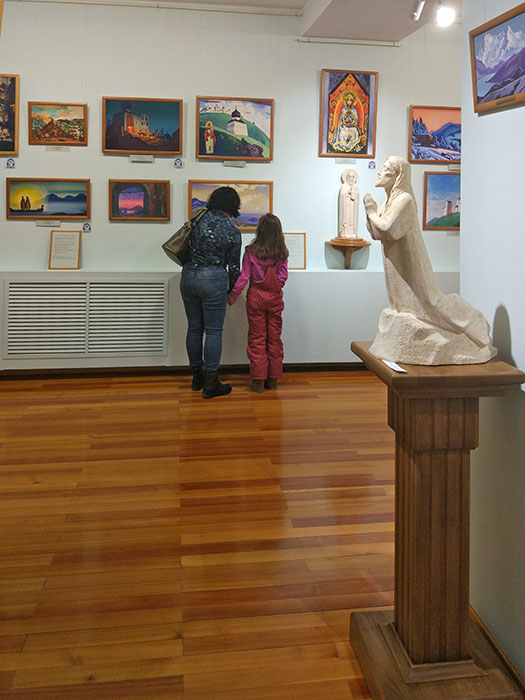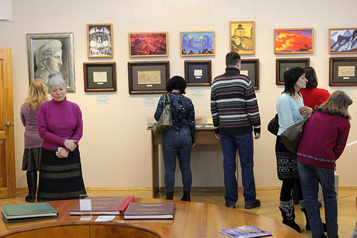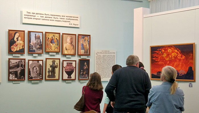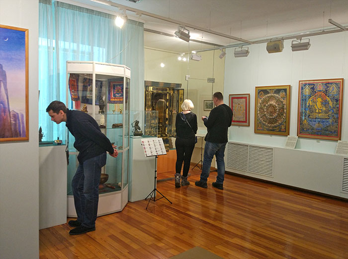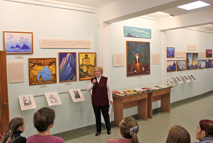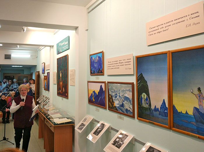 После просмотра программы на втором этаже Музея была открыта выставка «Урусвати – Свет Утренней Звезды», на которой представлены репродукции картин Н.К. Рериха, посвящённых жене, Елене Ивановне, а также её любимые полотна. Выставка дополнена предметами и фотографиями. Эта выставка, — «выражение признательности той, которая дала человечеству так много, что на века ему хватит изучать и применять её наследие», как говорила о ней Н.Д. Спирина.