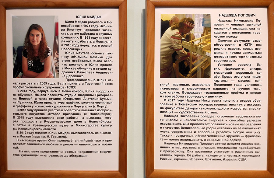 Н.Н. Попович и Ю.И. Майдан в своё время учились в новосибирской изостудии «Открытие». Её руководитель А.К. Лузянин так отозвался об выставке: «Искусство призвано стирать пыль повседневности. Я смотрю на работы Надежды Попович и Юлии и хочу сказать, насколько они с душой написаны. Это творческие работы, не мёртвые копии. Они — живые. Я рад за рост своих учеников. Благодарю за возможность открытия этой выставки».