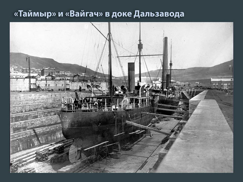 В 1907 году было принято решение о строительстве двух гидрографических судов. Через два года со стапелей Петербургской верфи сошли два ледокола: «Вайгач» и «Таймыр». После снаряжения и укомплектования суда отправились в длительное, почти кругосветное плавание во Владивосток, где базовым портом для ледоколов станет бухта Золотой Рог.