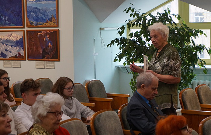 «Человек — это звучит гордо» — на эту тему 15 октября в Музее Н.К. Рериха говорили сотрудники Совета ветеранов Центрального района г. Новосибирска со школьниками средней школы № 99.