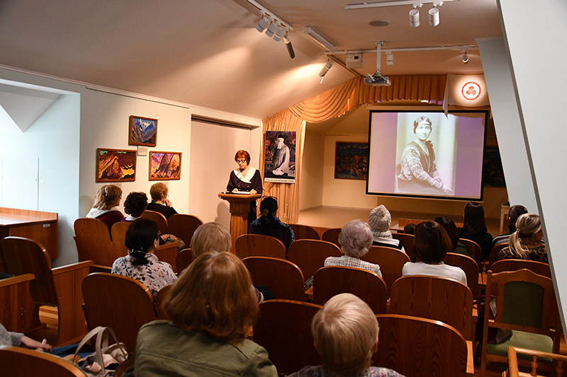 После просмотра фильма о Николае Константиновиче Рерихе «Творец будущего» выступила Н.В. Грипич с сообщением о Зинаиде Григорьевне Фосдик. В этом году — 13 ноября — исполняется 130 лет со дня её рождения.