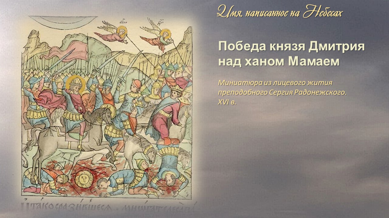 С великой радостью вернулся победоносный князь в своё отечество и «незамедлительно пришёл к Святому старцу Сергию, чтобы воздать ему благодарность за добрый совет…» Он «прославлял всесильного Бога и благодарил старца и братию за молитвы».