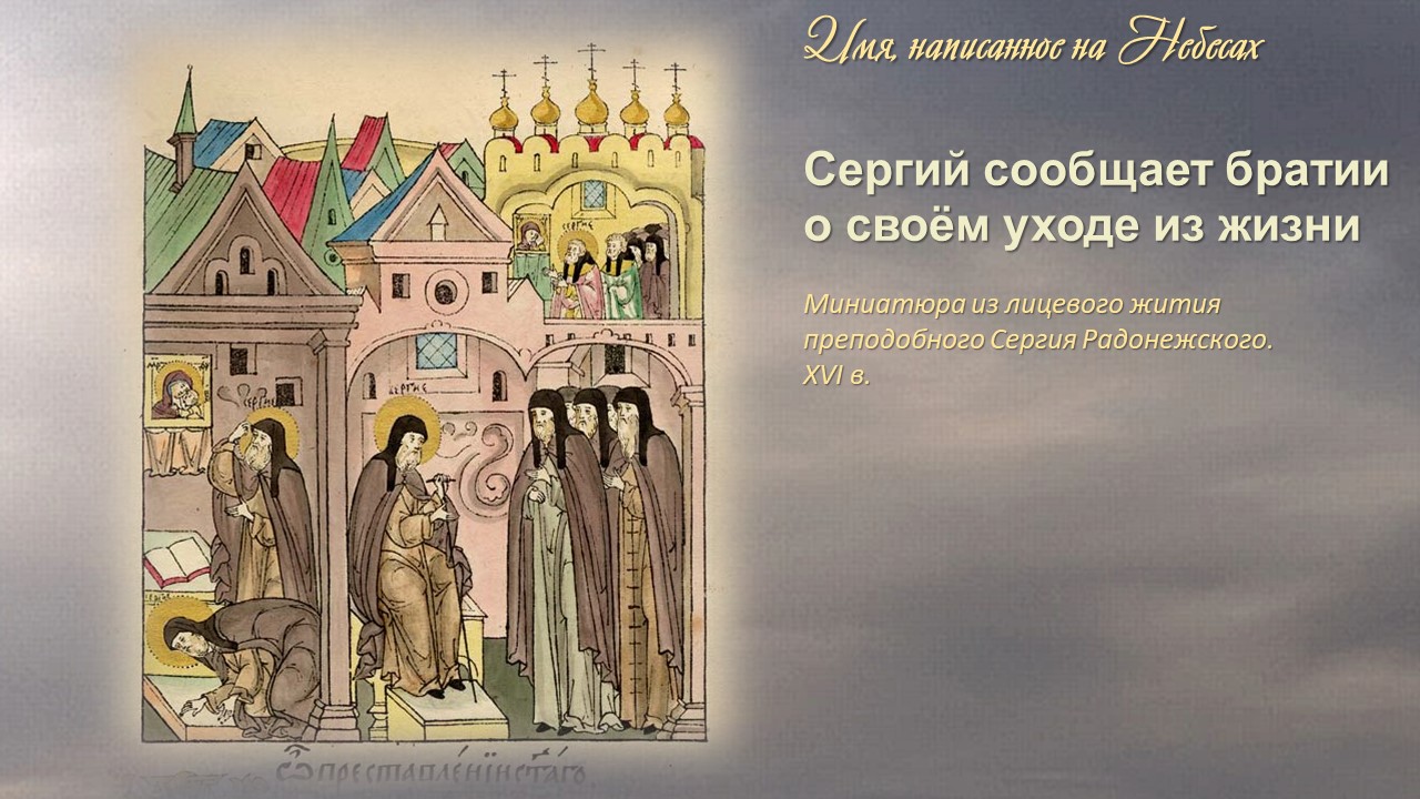 К тому времени «преподобный Сергий просиял в своём месте, в монастыре, называемом Радонежским… имя его прославлялось повсюду, в разных землях и городах, ибо добродетели свойственно делать видимым для всех её стяжавшего», — пишет Епифаний.