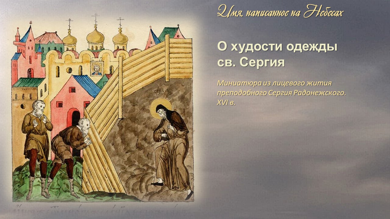 Монастырская братия никогда не видела на Преподобном новой одежды из дорогого и цветного сукна. Его одеяние, неказистое и старое, всегда было сшито из грубого сукна, и Святого можно было принять за нищего. Так и пришедший в монастырь издалека крестьянин, чтобы увидеть прославленного игумена, не смог сразу признать в нём настоятеля монастыря и стал отзываться о Сергии непочтительно. Но таких людей Преподобный исправлял смирением и кротостью.