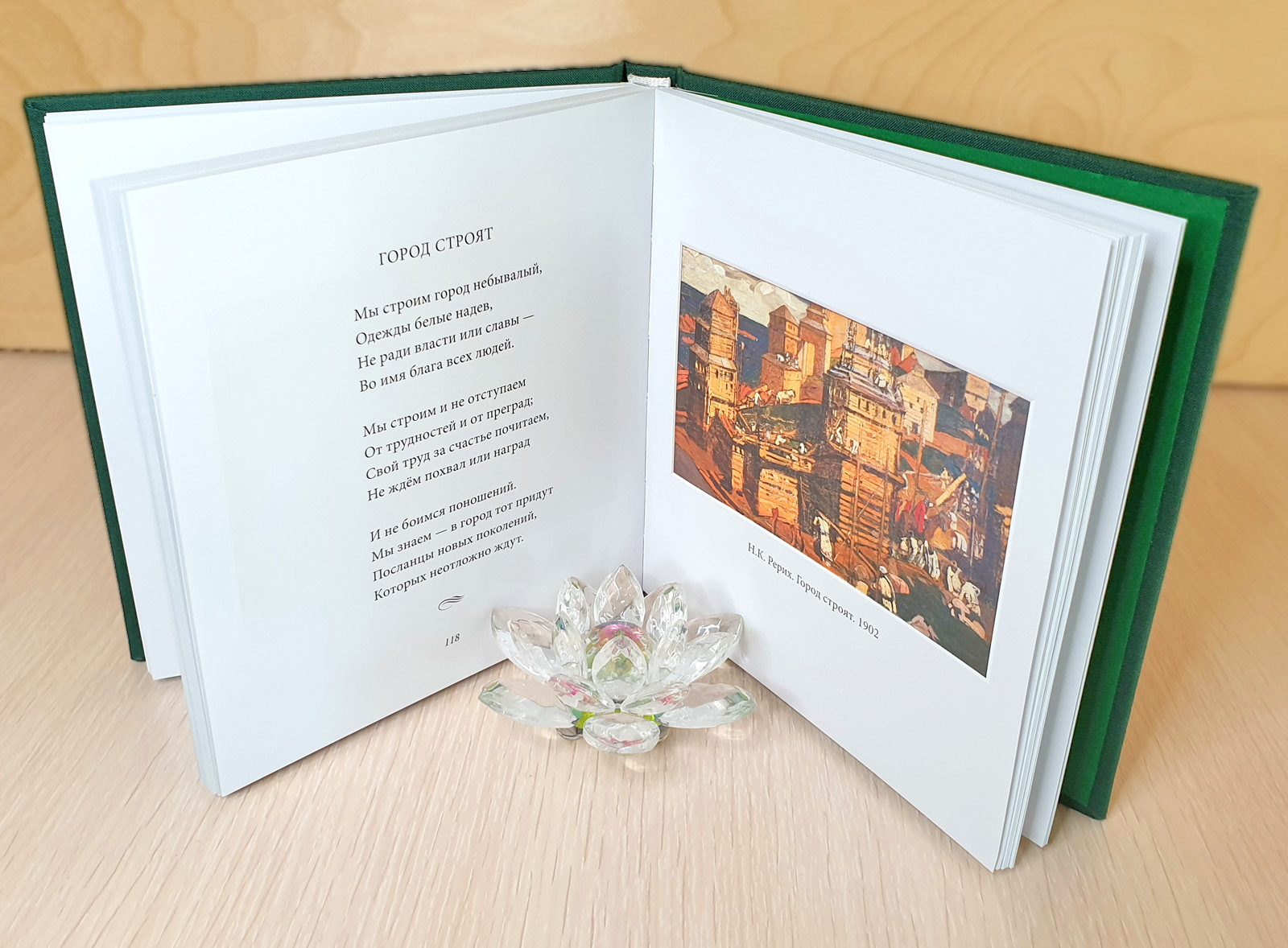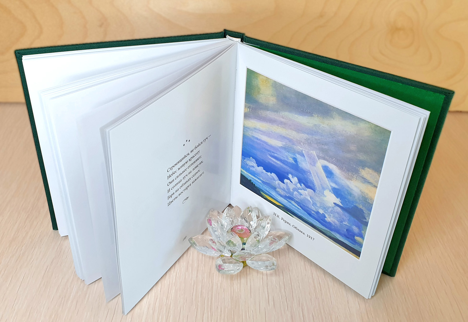 Такой Книгой с большой буквы стала для меня книга «Весть Красоты» — сборник стихов Н.Д. Спириной Издательского центра РОССАЗИЯ. Берешь книгу в руки — и возникает ассоциация драгоценной шкатулки: настолько гармонично и любовно сочетаются изящество и качество внешнего оформления с тонкой мудростью авторского стиха и сиянием красок и художественных образов живописи Н.К. Рериха. Что очень точно передает цитата китайского мыслителя Цзян Шао Шу, приведенная в предисловии к изданию: «Стихи — это живопись вне зримых форм, а живопись — это стихи без слов. Они должны взаимораскрывать друг друга». Тайна точно найденного слова вступает в священный союз с художественным воплощением.