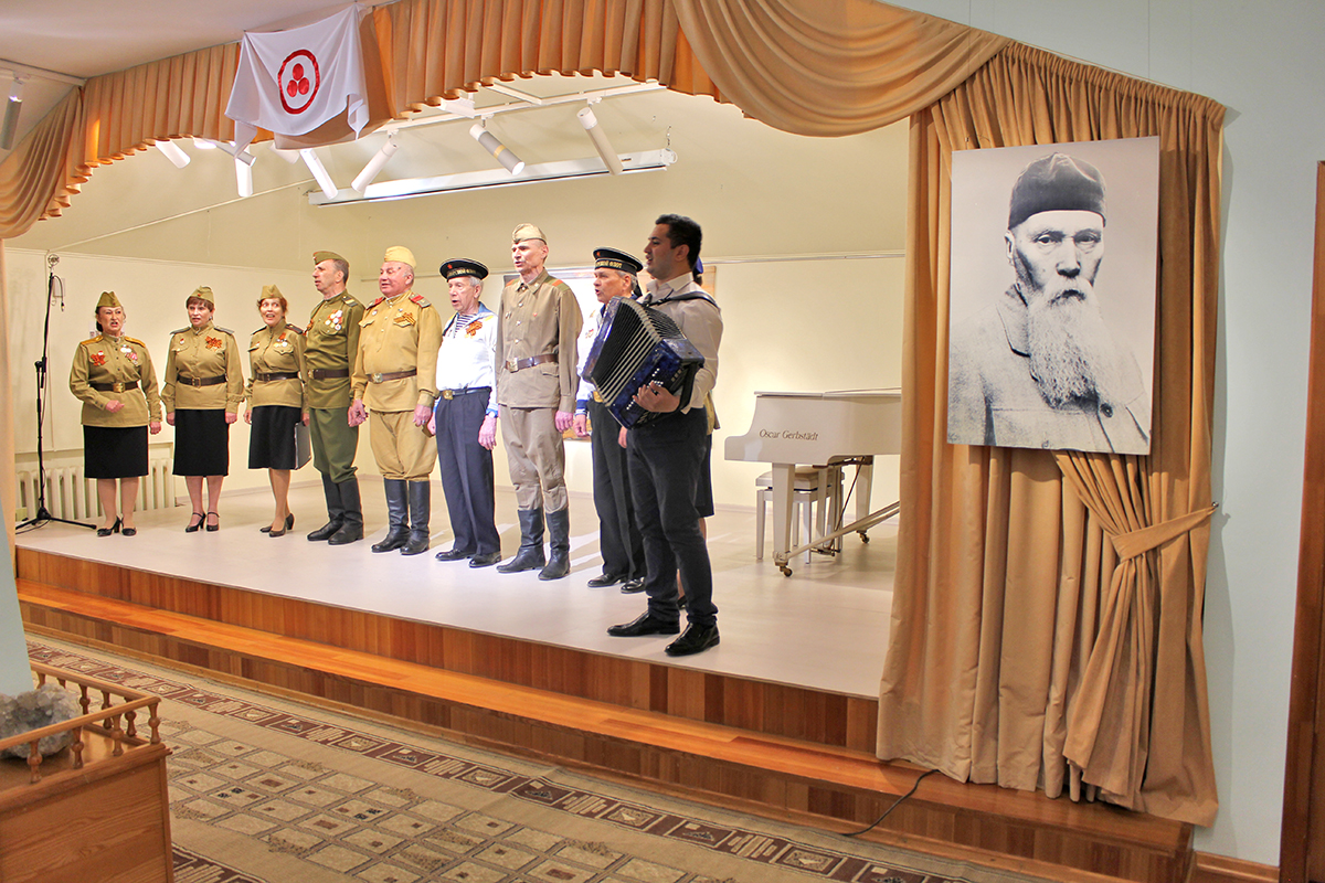 14 мая, во вторую субботу месяца, программа Музея Н.К. Рериха была посвящена Дню Победы. Звучали стихи, говорилось о подвигах сибиряков. Был показан фильм «Герои известные и неизвестные», проведена экскурсия «Героика в творчестве Н.К. Рериха». В этот день у нас в гостях была фронтовая агитбригада «Сибиряки» с концертной программой «Когда поют солдаты».