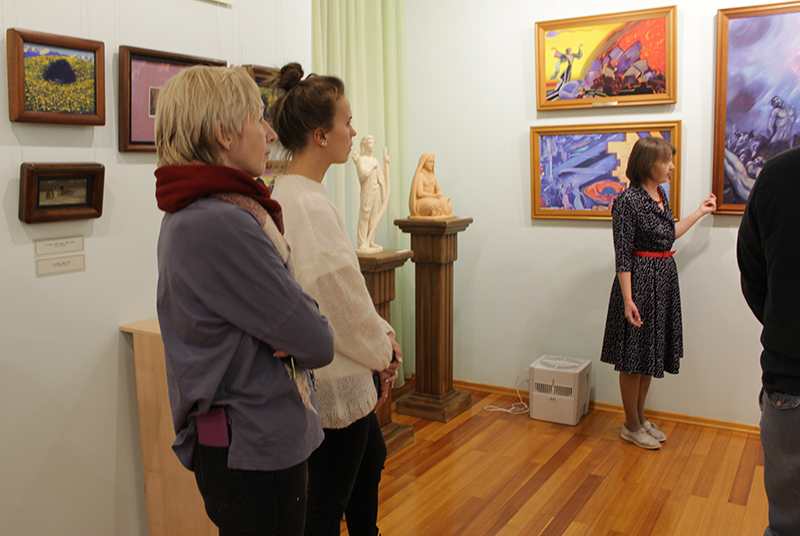 Гости музея посмотрели подборку документальных видеокадров о С.Н. Рерихе и слайд-фильм студии СибРО «Апостол Красоты».