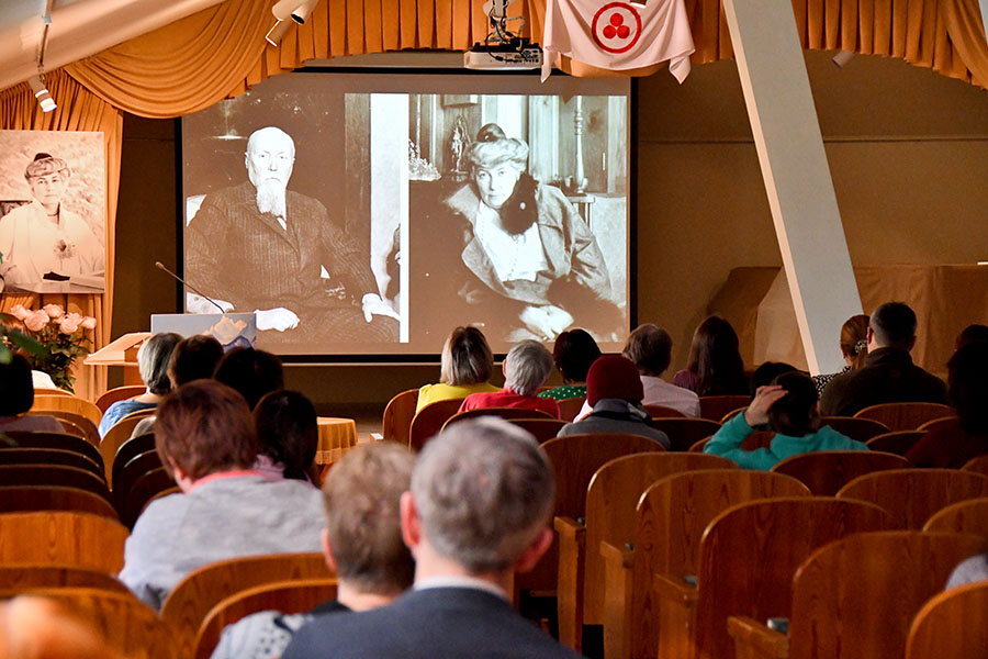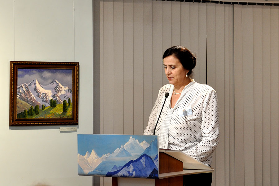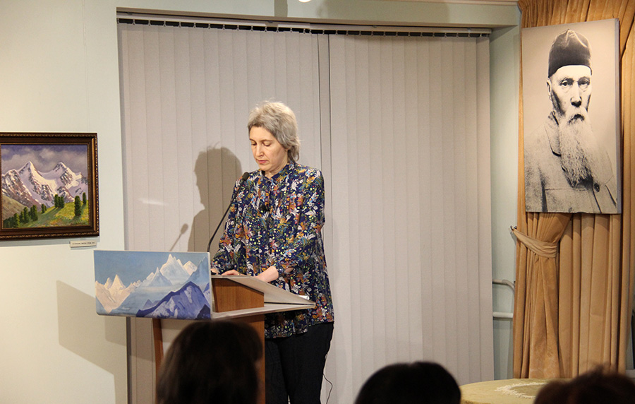 «Здравствуйте, дорогие друзья! Мы рады приветствовать всех собравшихся сегодня в этом зале в день рождения Елены Ивановны Рерих. Елена Ивановна стала носительницей сокровенной Мощи и Знания Духа. Стала зовущей силой, зажигающей готовые души огненным словом.