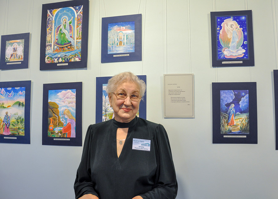Понятно, что имея огромный опыт в педагогической и общественной сфере, Людмила Викторовна прекрасно владела любой аудиторией, что было совершенно необходимо в работе с посетителями Музея Н.К. Рериха на Алтае, где она водила экскурсии в течение каждого туристического сезона. Сколько было поучительных историй для нас — тех, кто готовился водить экскурсии и учился этому, слушая Людмилу Викторовну. Контингент посетителей был очень разнороден — от иностранцев, представителей власти, желающих узнать о Рерихе, до откровенных недоброжелателей, не смирившихся с самим фактом существования такого музея. Бесценен приобретённый тогда опыт — сотрудники СибРО старались перенимать выдержку Людмилы Викторовны, достоинство, с которым она пресекала разговоры, в чём-то умаляющие деятельность Н.К. Рериха.