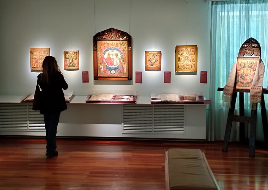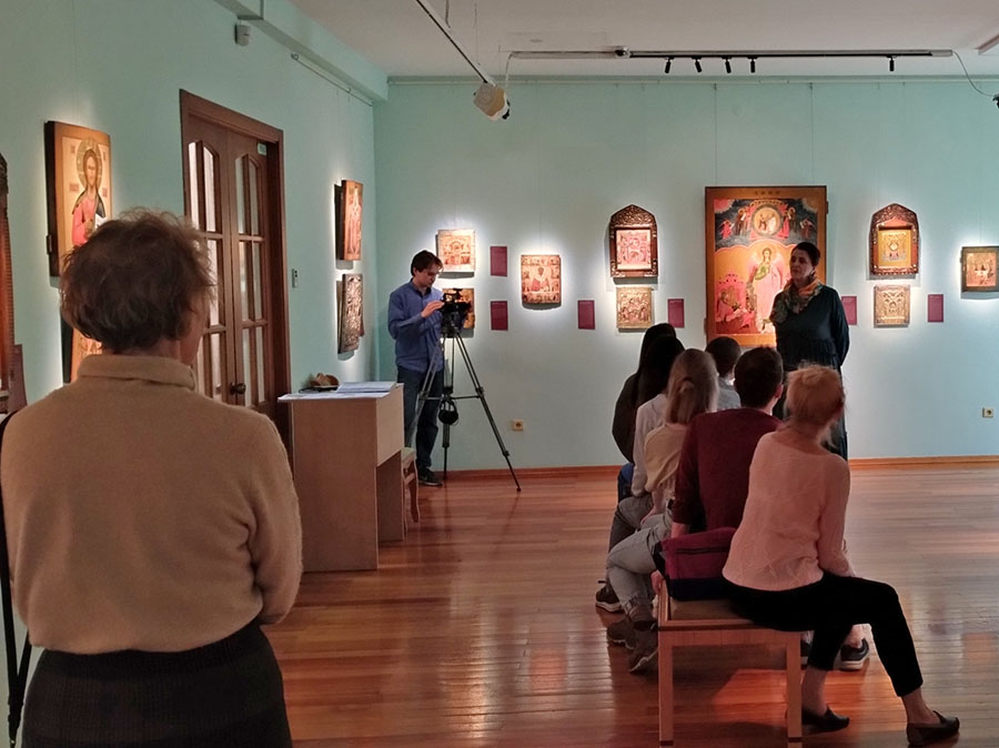 В зале иконописи работает выставка «Шедевры древнерусской и старообрядческой иконы» («Центр искусств. Москва»). В этом зале сотрудником музея Надеждой Жарий была проведена экскурсия «Небесные Покровители». Также демонстрировалась видеозапись экскурсии по выставке кандидата искусствоведения, эксперта по культурным ценностям Министерства культуры РФ Натальи Мерзлютиной.
