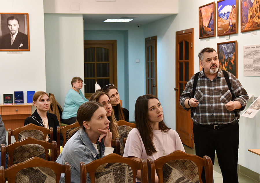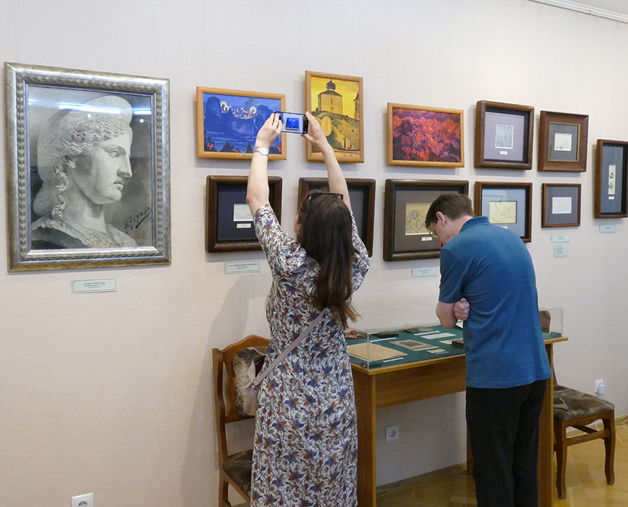 Посетители познакомились с творчеством Н.К. и С.Н. Рерихов, которое представлено живописными работами, графикой и репродукциями картин. В течение дня проводились экскурсии по выставочным залам. Экскурсоводы также рассказывали о литературном и философском наследии семьи Рерихов.