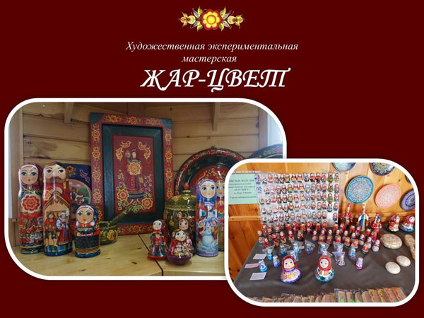 Художественная экспериментальная мастерская «Жар-Цвет», которая входит в состав «Города мастеров», работает и над выставочными экспонатами, и над созданием новых сувениров, которые вызывают большой интерес у туристов, посещающих Мемориальный дом-музей Н.К. Рериха в Верх-Уймоне.
