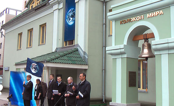С приветственными словами выступили первый заместитель мэра Новосибирска А.Е. Ксензов, заместитель руководителя департамента природных ресурсов и охраны окружающей среды Новосибирской области А.А. Даниленко, заместитель начальника производственно-технического управления по общесистемным вопросам и природоохранной деятельности ОАО «Сибирская энергетическая компания» А.С. Осовский. Выступающие рассказывали о нелёгком труде по добыче электроэнергии, о необходимости охраны окружающей среды во время производственных процессов, о бережном расходовании энергоресурсов и необходимости открытия новых возобновляемых источников. Благодарственные письма были вручены представителям Сибирской энергетической компании, Ассоциации детских объединений, Центральной городской библиотеки им. К.Маркса. В Колокол Мира ударили победители седьмого открытого городского экологического конкурса детского творчества "Дикие животные родного края". "Голос новосибирского Колокола Мира, - отметил ведущий, - сливается с миллионами голосов, готовых принимать решения и ответственность за будущее человечества, за гармонию сосуществования всех живых существ планеты по имени Земля". Встречу завершило выступление творческого коллектива с песней о Земле, а затем участники праздника прошли в городской центр на открытие выставки лучших работ конкурса "Дикие животные родного края".