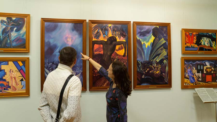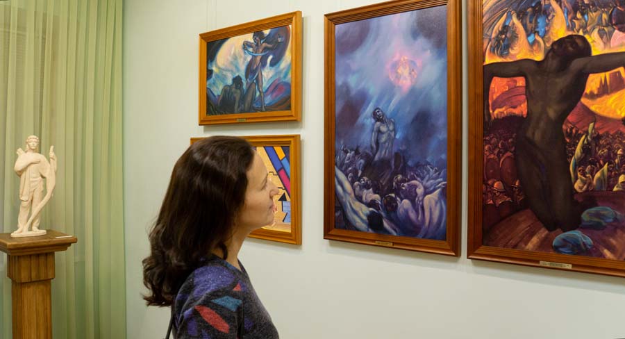 Экскурсия под названием «Воззри, человечество!» проводилась по картинам С.Н. Рериха, затрагивающим проблемы современного мира: «Я двигаюсь среди этих теней», «Воззри, человечество!» «Распятое человечество» (триптих).