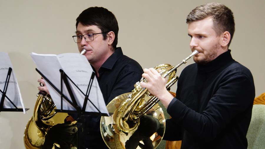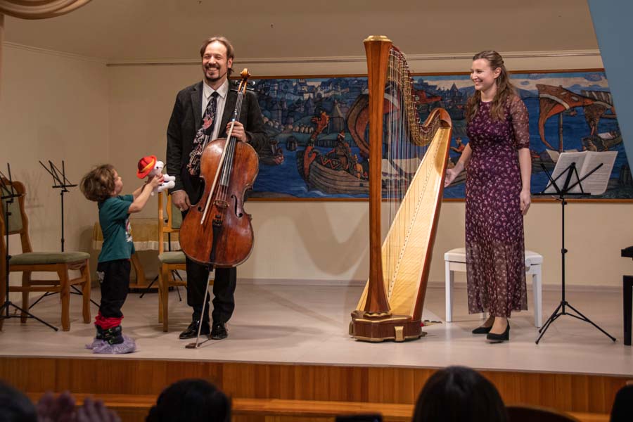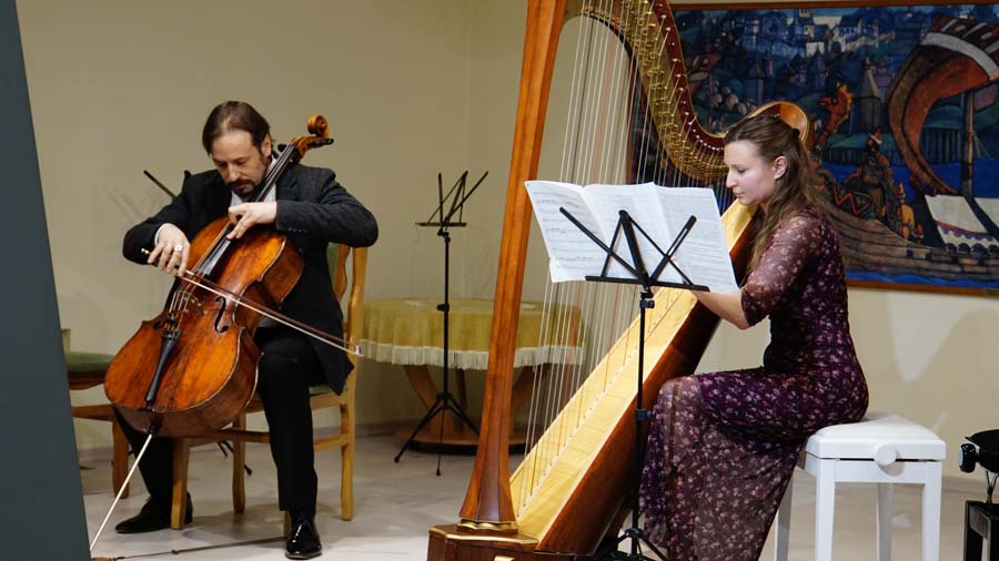 Пред зрителями выступили солисты оркестра Новосибирского академического театра оперы и балета: Михаил Соколов (валторна), Роман Матусевич (арфа).