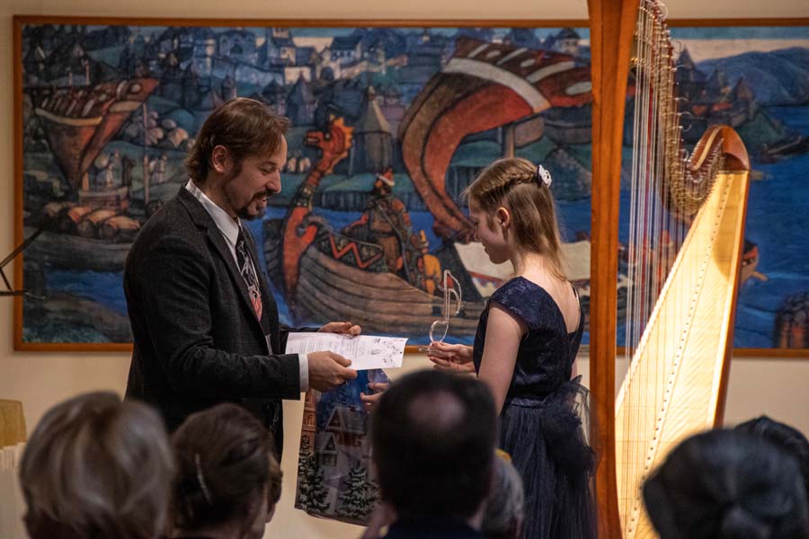 29 декабря в Новосибирске, в Музее Н.К. Рериха, состоялся заключительный концерт Второго сибирского арфового фестиваля имени Н.Н. Покровской. Программа началась с прослушивания конкурсных выступлений учеников Детской музыкальной школы №1 имени А.С. Зацепина (г. Новосибирск), класс преподавателя И.Р. Изаксон.