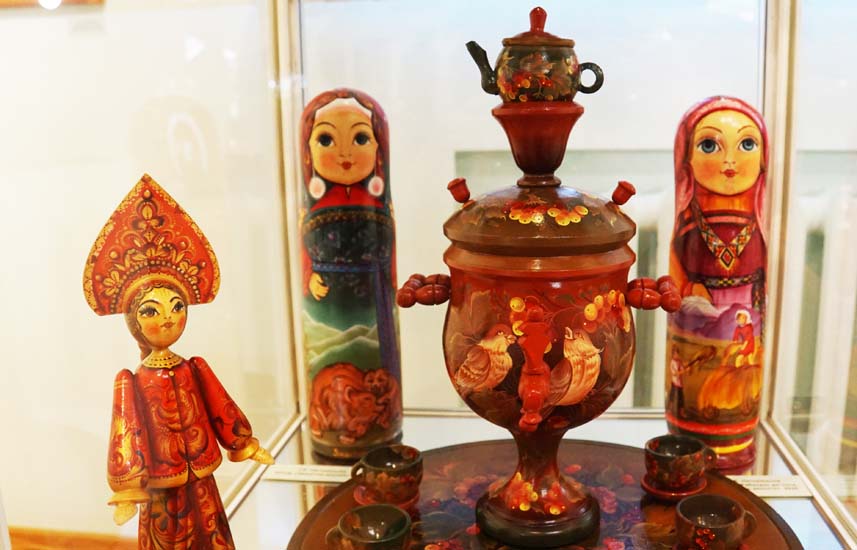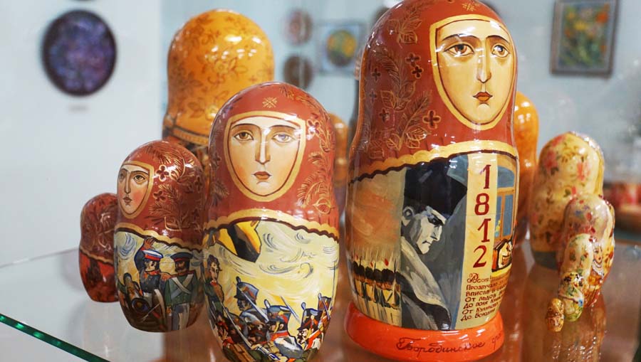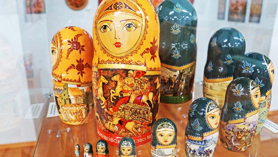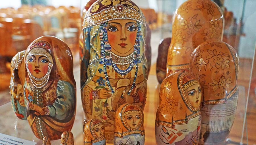 На данной выставке матрёшки Н.Т. Черниковой экспонируются тематическими блоками. «История в матрёшках» посвящена великим ратным подвигам русского народа в Куликовской и Полтавской битвах, Бородинском сражении, в Великой Отечественной войне. Отдельно представлены «Царские жёны», «Мы из СССР», «15 советских республик», «Новосибирск».