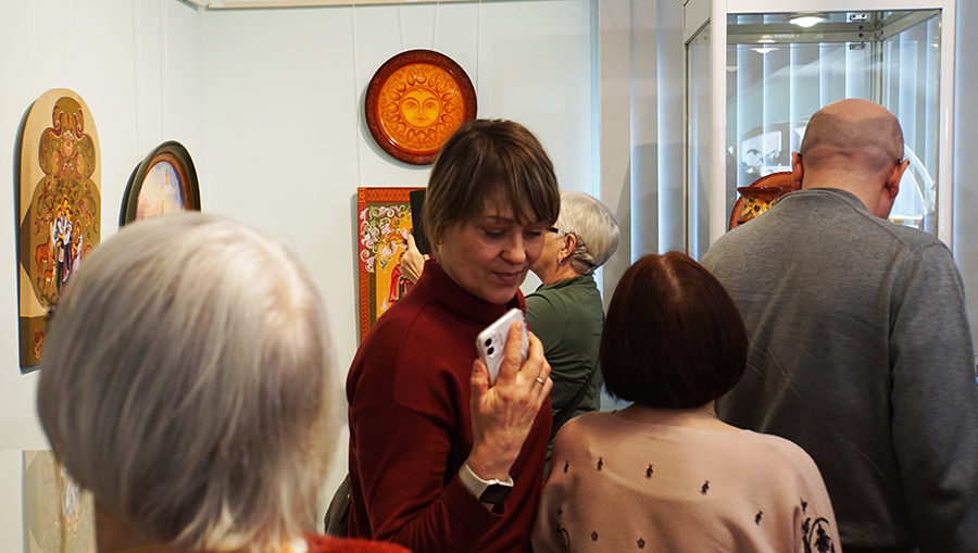 Тамара Ефимовна Наговицына, г. Барнаул —народный мастер Алтайского края, неоднократно экспонировавшая свои работы в Музее Н.К. Рериха. На выставке «Мир, в котором хочется жить» представлены декоративные панно, расписные тарелки, матрёшки и другие работы.